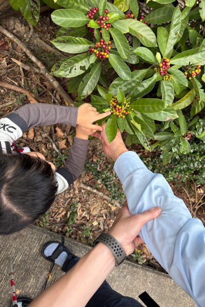 Explore Hong Kong’s most common woody plant—Wild Coffee—with the visually impaired, feeling the leathery texture of its smooth, hairless leaves.