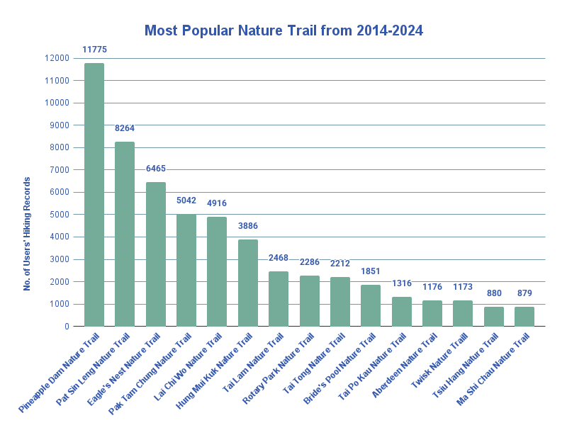 Interestingly, when we look back at theanalysis done during TrailWatch’s fifth anniversary in 2019, these three trails were already the most popular nature trails among users at that time, demonstrating their lasting appeal. While these nature trails might appear modest at first glance, each offers its own unique scenery, ecological features, and distinct characteristics.