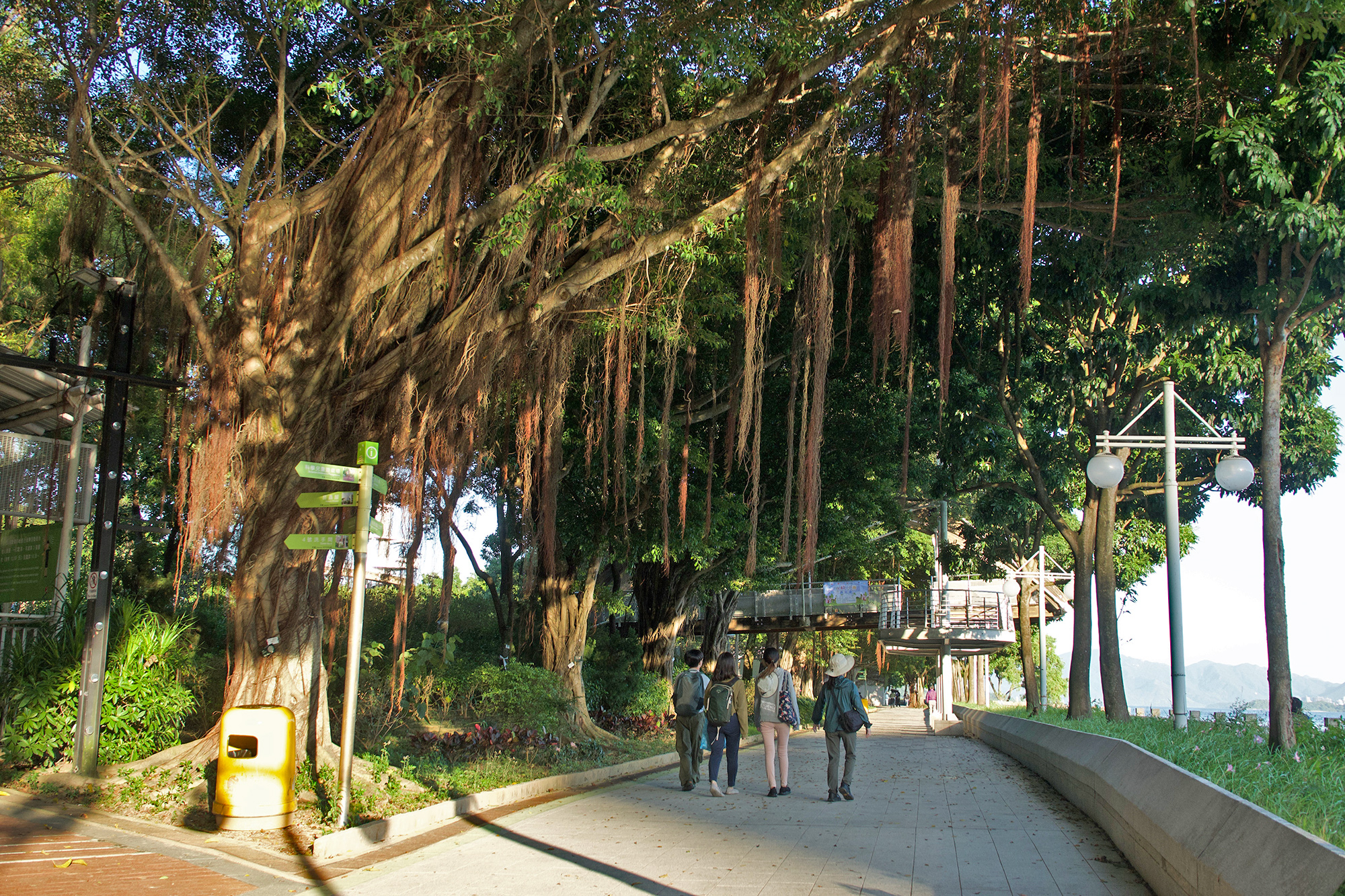 你有到過西營盤的佐治五世紀念公園嗎?這個歷史悠久的公園,在入口處建有長達100米的古老大麻石石牆,牆上生長著一棵棵十餘米高的細葉榕。細葉榕屬典型的「西蘭花形」喬木,粗大主幹配豐滿樹冠,枝條還會長出獨特的鬍鬚狀氣根。氣根具攀附能力,接地後能幫助支撐大樹,因此能在石牆這類惡劣環境茁壯成長。香港古樹名木冊中的439棵樹木,近半為細葉榕,其中29棵長在石牆上[1]。古樹名木之中樹齡超過一百年的僅有8棵,細葉榕佔3棵[2]。細葉榕比人類長壽,屹立原地飽歷風霜,與不同年代的人共度歲月,與野生動物經歷環境變遷,與建築物共構城市面貌,更見證城市的興衰榮枯。