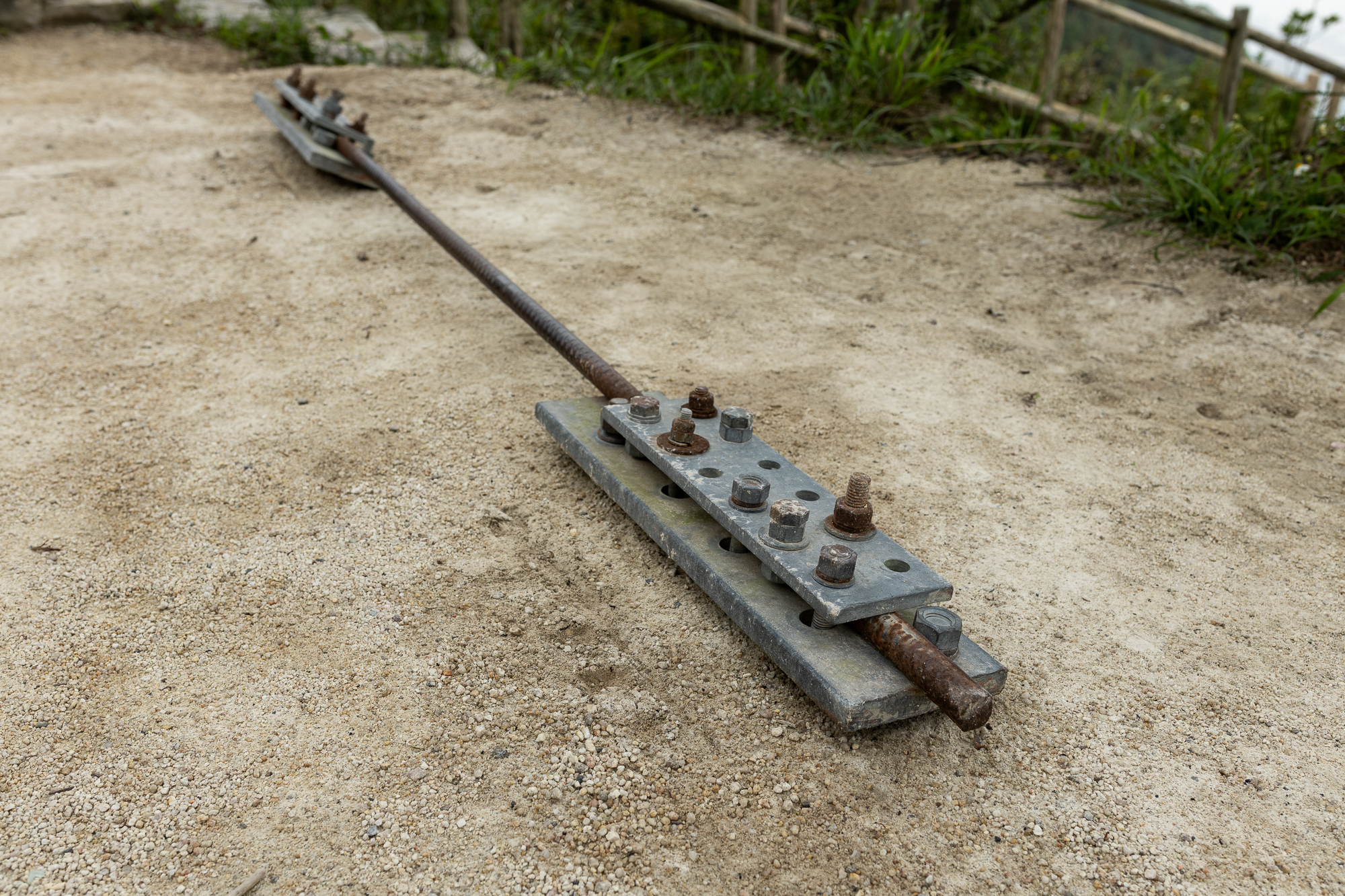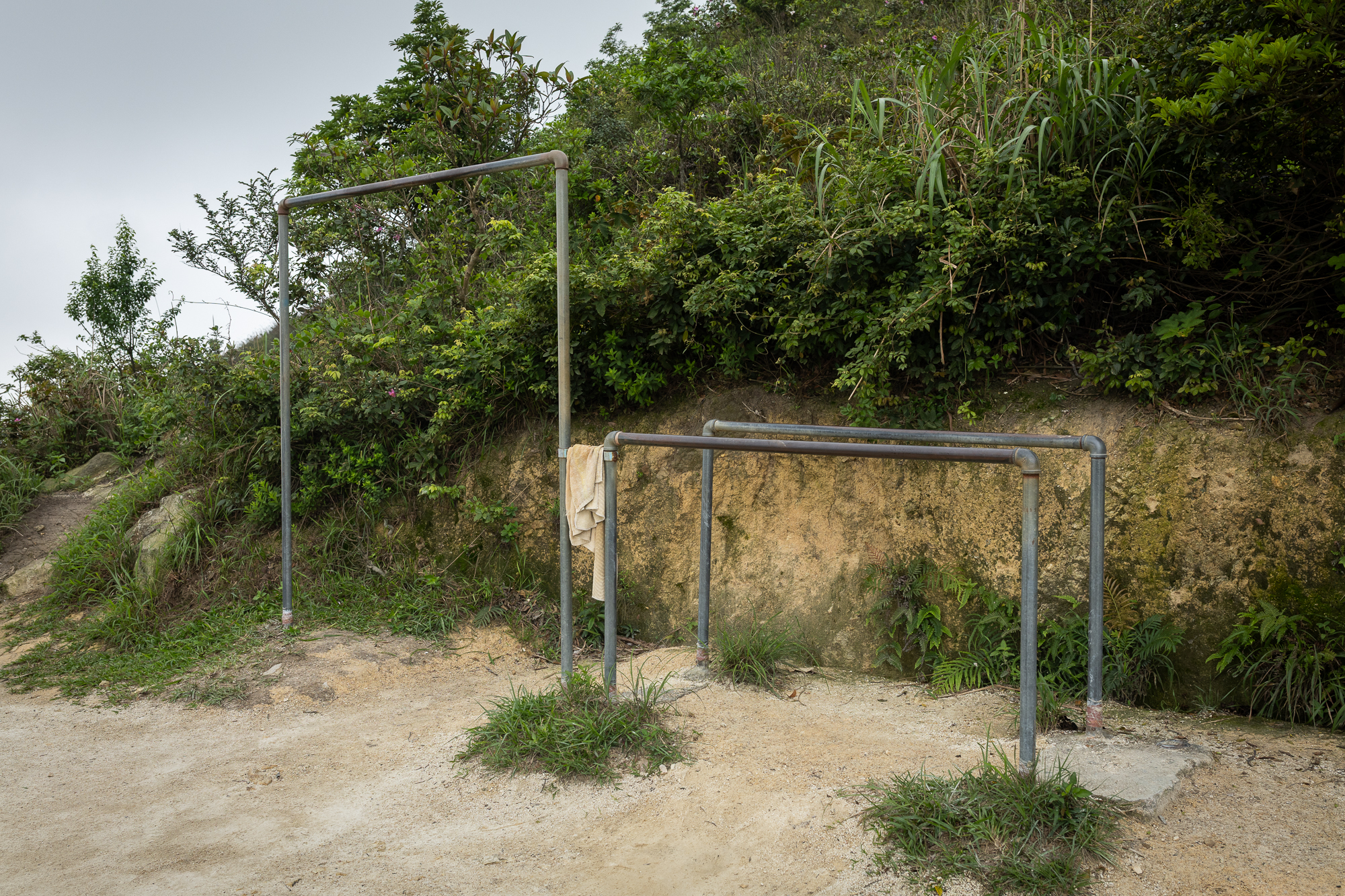 近青山山頂的單槓和雙槓,可見鐵管下部仍有修補過的痕跡。