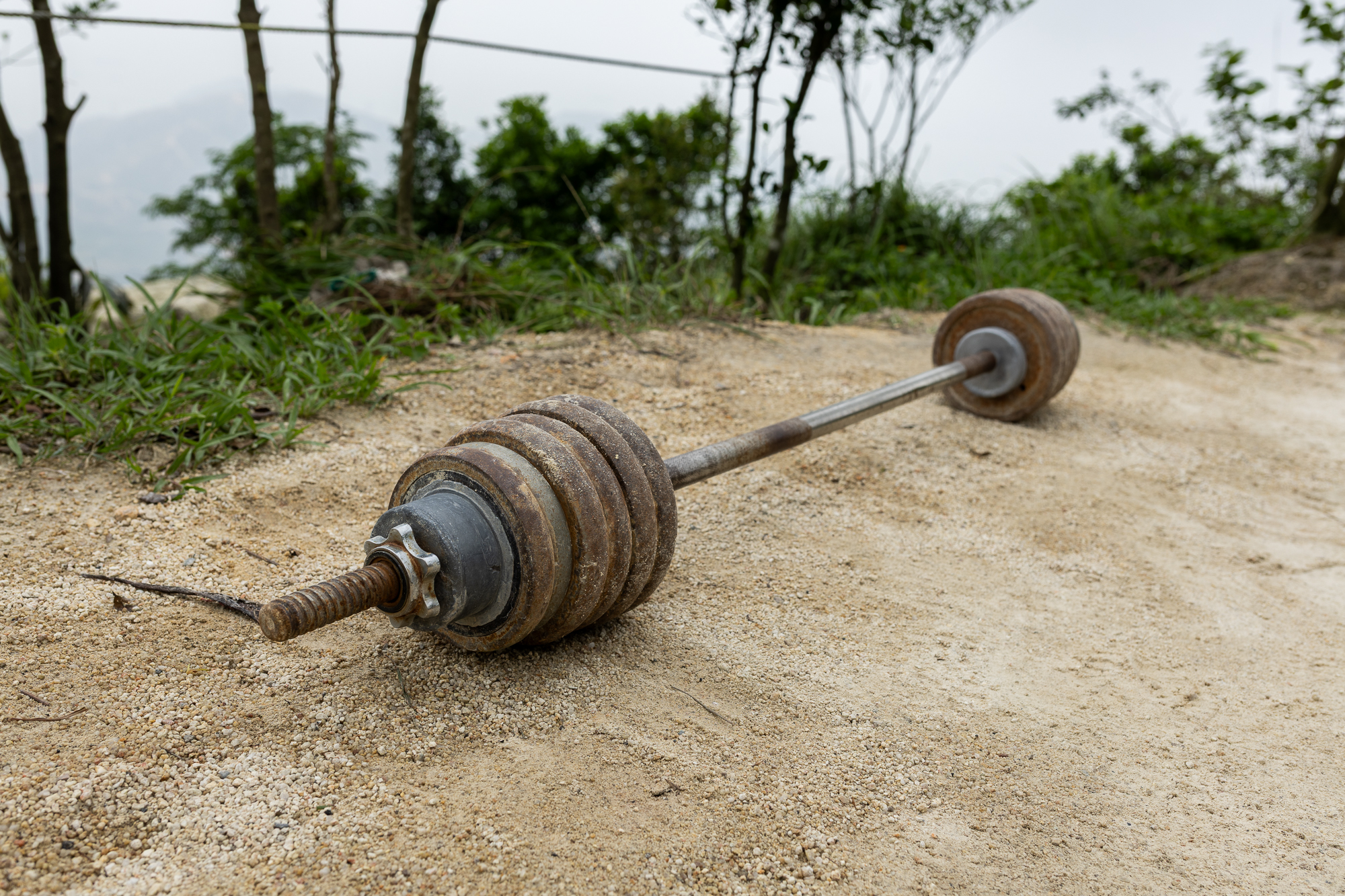 被棄置在山坡上的水泥部件,相信原屬啞鈴的一部分。