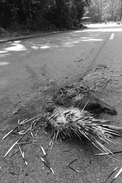 血肉模糊的東亞豪豬(俗稱箭豬)。(攝:Pan Lau)