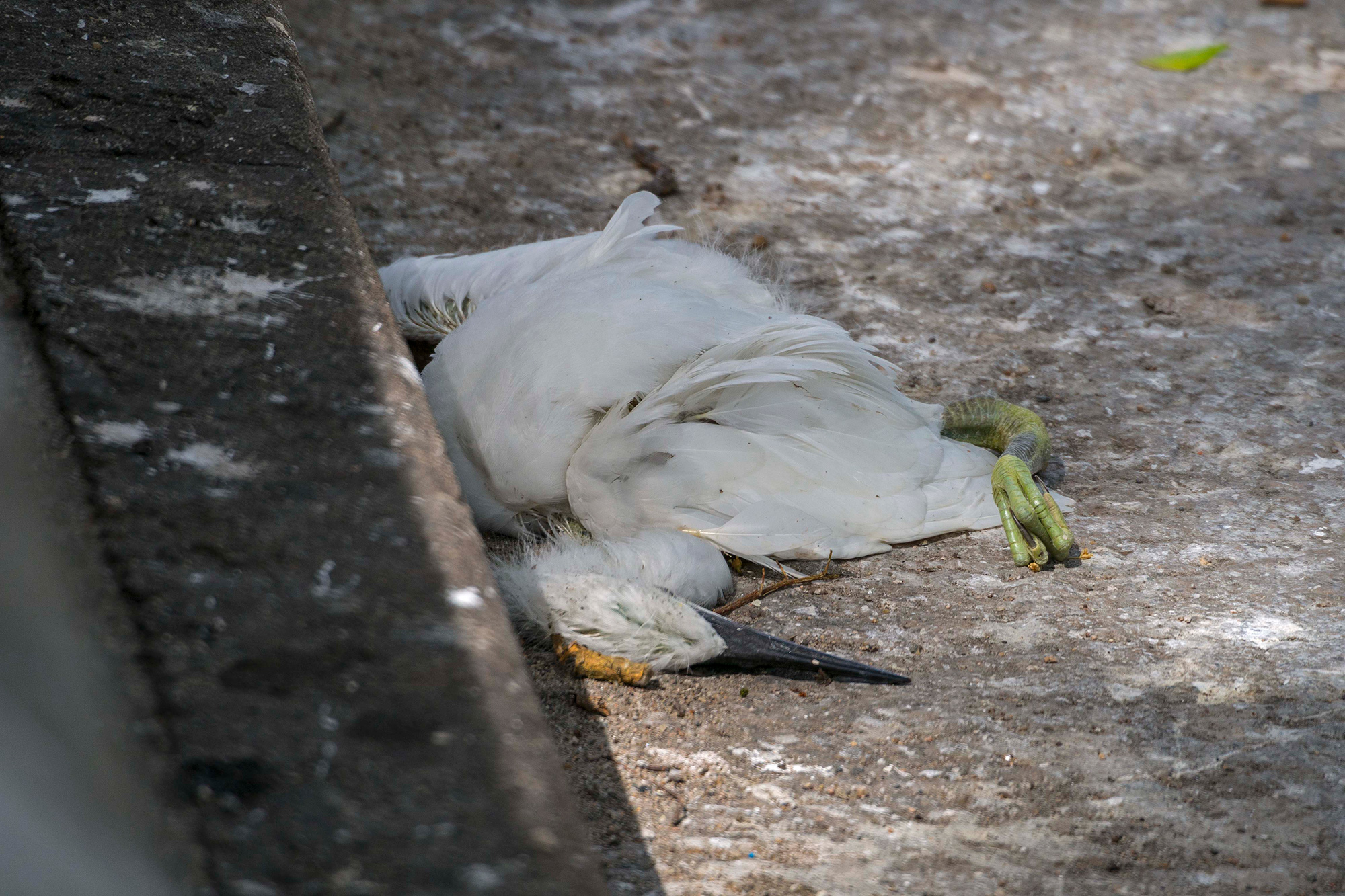 倒卧路邊的小白鷺。(攝:Pan Lau)