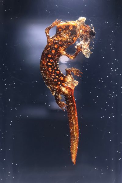 2024年《一生螈命》生態影像藝術展內展出的香港瘰螈屍體標本。(攝:Parks and Trails)