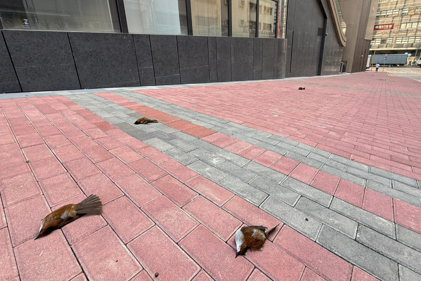 2024年11月12日,在荔枝角發現8隻栗背短腳鵯集體撞擊玻璃死亡。(攝:香港觀鳥會)