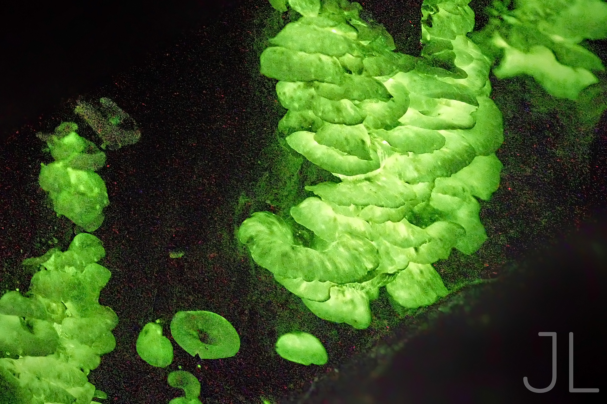 暗藍小菇能自產光,在漆黑中散發微微綠光。