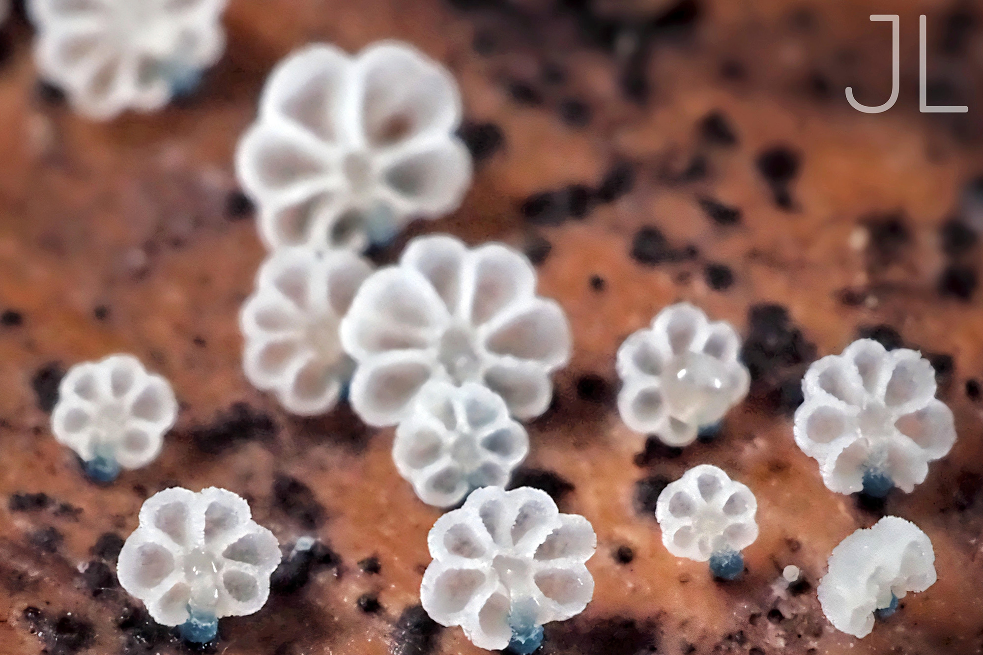 梅雨季節在枯竹子上大量群生的迷你小菇。初發現時那藍色的菌柄實在讓人震撼,其體積小,最大傘直徑僅3mm。