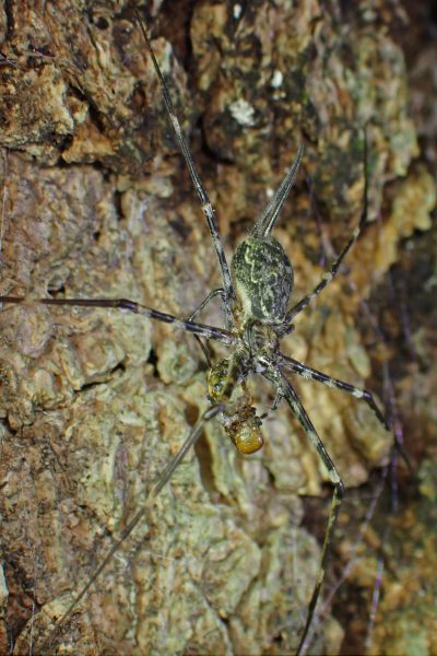 專門在樹幹上生活和覓食的長紡蛛,牠不動的時候,是很難發現牠的存在。