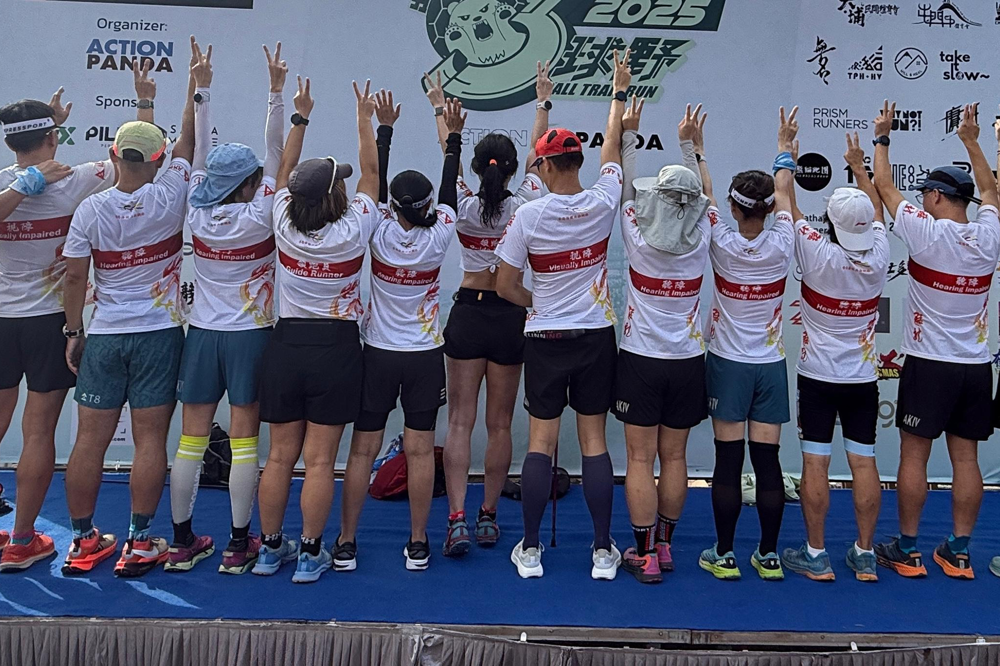 然而,領跑員的任務遠不止於「護送」,而是成為推動社會共融與包容的橋樑,透過細緻的觀察、急救知識與領跑技術,帶領隊友穿越自然障礙。擔任領跑員不僅需熟悉山徑路線,更要懂得根據隊員的不同需求進行適時調整。對視障跑者而言,領跑員會以「前背行山法」、繩索或語音指引方向及地形變化;對聽障者則利用手勢和視覺信號傳遞關鍵訊息。這份雙向的合作,建立了深厚的信任,同時賦予隊員勇氣和自信。
