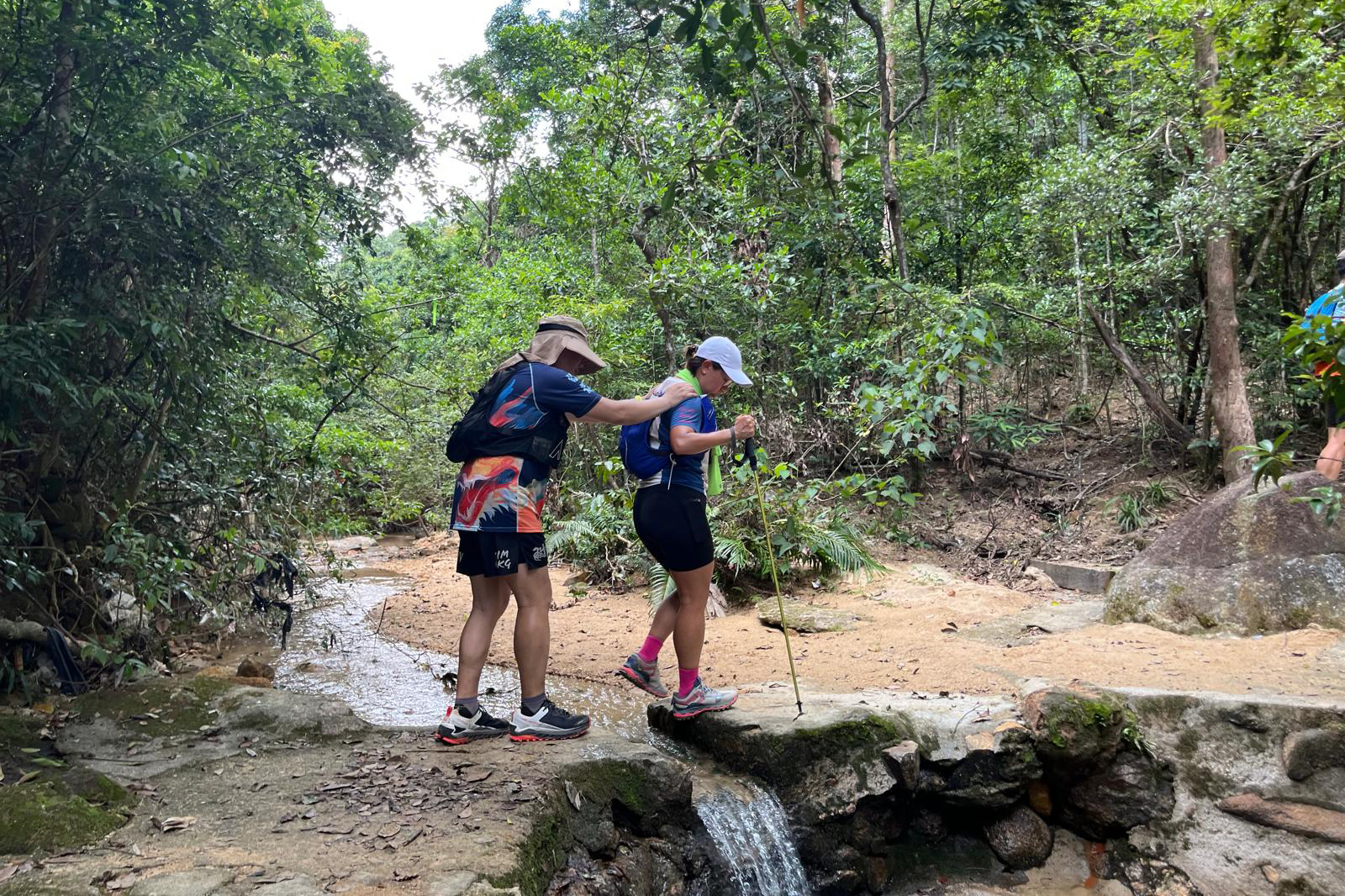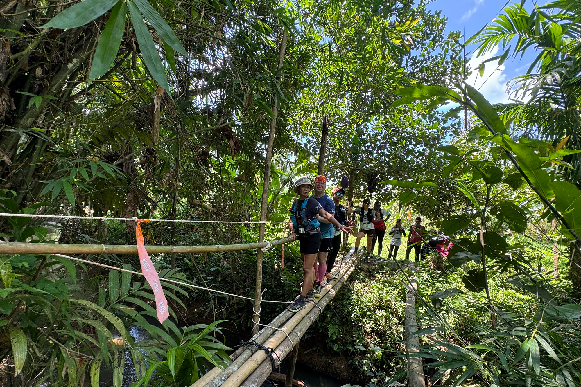 在UTMB賽事帶領視障人士橫過獨木橋。